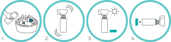 5. Η μάσκα πρέπει να παραμείνει εφαρμοσμένη στο πρόσωπο του ασθενούς για 5-6 εισπνοές με την χορήγηση ενός ψεκασμού.