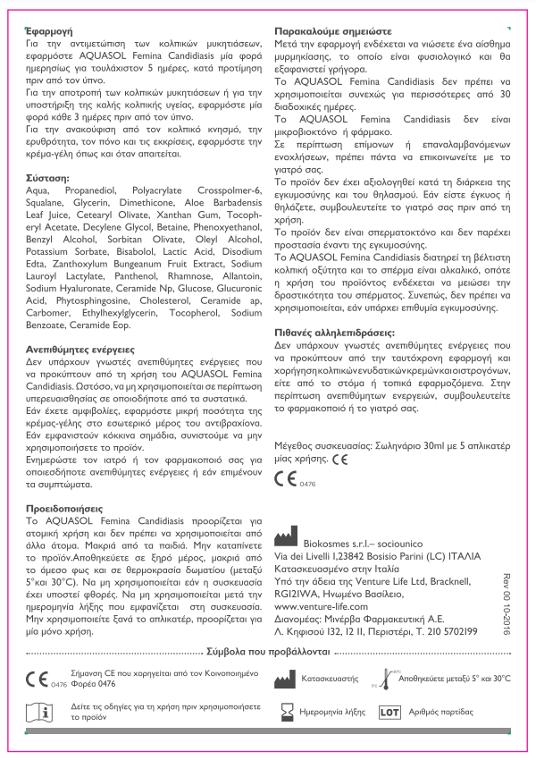 Minerva Aquasol Femina Candidiasis Vaginal Gel 30ml - Γέλη για την Ευαίσθητη Περιοχή για τη Αντιμετώπιση Προβλημάτων Μυκητιασικής Κολπίτιδας (Καντιντίαση)