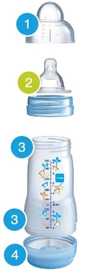 • Όλα τα μπιμπερό της MAM κατασκευάζονται από υλικά που δεν περιέχουν Δισφαινόλη A και S (BPA & BPS) (χωρίς BPA σύμφωνα με τον κανονισμό της ΕΕ αρ. 321/2011).