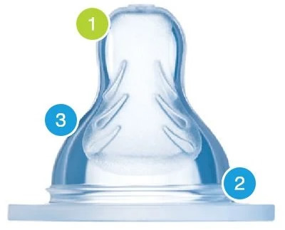2. ΒΑΛΒΙΔΑ ΑΕΡΙΣΜΟΥ: Επιτρέπει στη θηλή να διατηρεί το σχήμα της και διευκολύνει τη σταθερή ροή του ροφήματος.