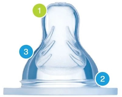 2. ΒΑΛΒΙΔΑ ΑΕΡΙΣΜΟΥ: Επιτρέπει στη θηλή να διατηρεί το σχήμα της και διευκολύνει τη σταθερή ροή του ροφήματος.